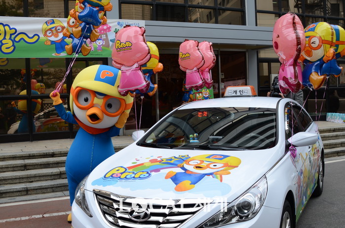 ▲ 25일 부터 서울시에서 운행을 시작한 뽀로로 캐릭터로 포장한 뽀로로택시© 로컬세계 |