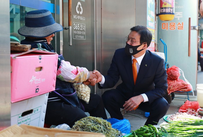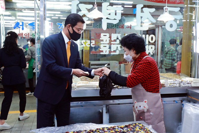 [로컬세계 박상진 기자]류태호 태백시장이 추석 연휴를 앞둔 29일 관내 전통시장에서 장보기에 나섰다.