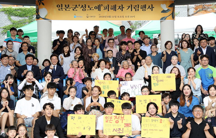 함께 자리한 이용수·이옥선 할머니는 “일본정부의 마음에 담긴 사과와 물질적·정신적 보상을 받아야 한다”라며 “세계 평화를 위해 피해자 문제가 해결될 수 있도록 모두가 힘써 줄 것”을 당부했다.