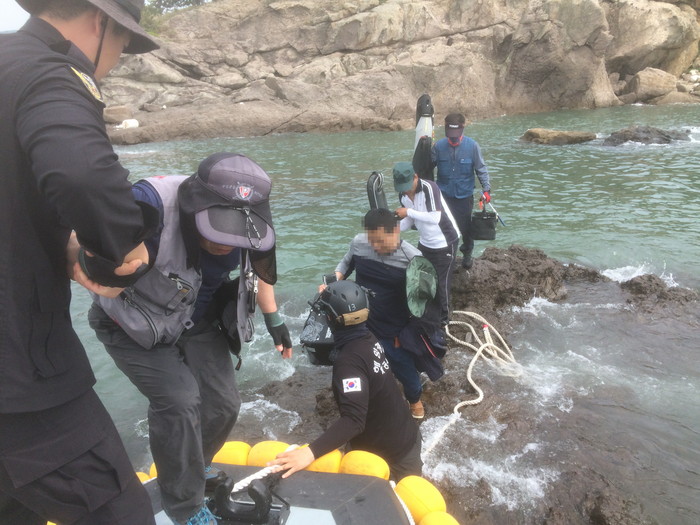 ▲고립자 구조작업 모습.(부안해양경찰서 제공) |