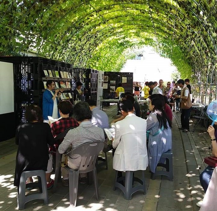 화성행궁 광장에 설치된 아고라에서는 국형결 건축가가 재생 팔레트로 지역책 전시관을 설치해 색다른 전시를 선보였다. 관람객들은 지역책을 읽고 토론하며 지역뮤지션의 공연을 즐겼다.