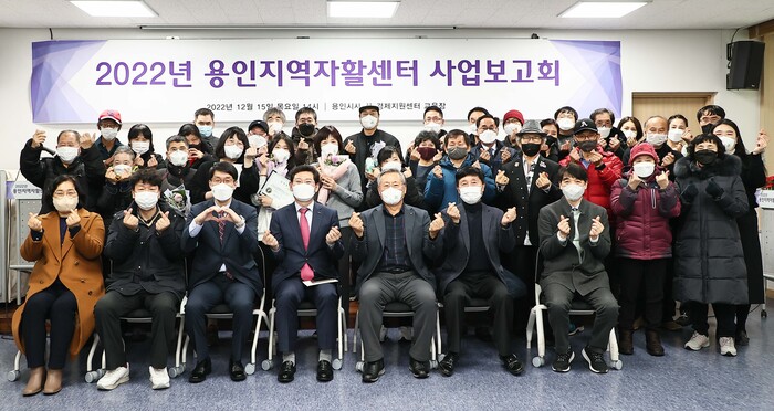 | ▲ 이상일 용인특례시장이 용인지역자활센터 사업보고회 참가자들과 기념촬영을 하고 있다. |