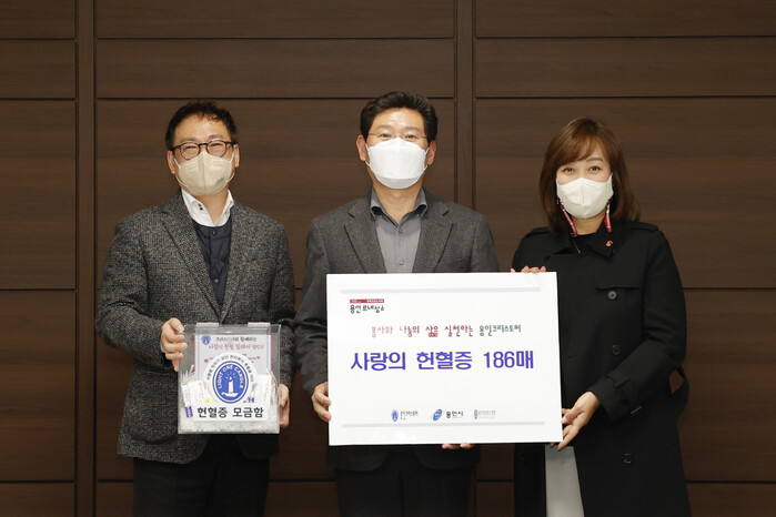 이날 이상일 시장이 전달한 헌혈증은 크리스토퍼 평생교육원 용인지부 총동문회가 혈액이 필요한 용인시민들을 위해 써 달라며 기부한 것이다.