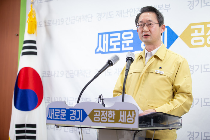 | ▲4일 오후 경기도청 브리핑룸에서 김희겸 경기도 행정1부지사가 정부 긴급재난지원금 세부내용과 신청절차 안내 등 관련 사안에 대한 언론 브리핑을 하고 있다.(경기도 제공) |
