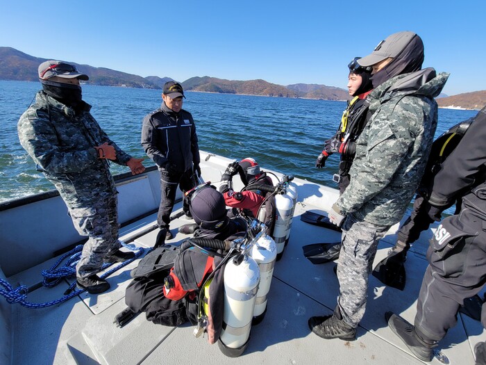 [로컬세계 부산=맹화찬 기자]중앙해양특수구조단은 27일 경남 진해 인근 해상에서 해군 해난구조전대(SSU)와 해양사고 대응 역량 강화를 위한 '합동 수중 수색구조훈련'을 실시했다.