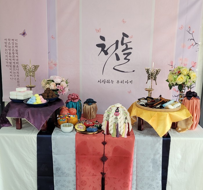 구성물품은 의상과 테이블보, 배경막, 각종 소품(촛대, 조화, 가랜드 돌잡이 용품세트 등)으로 이뤄져 있다. 또한 돌상 대여 이외에도 배넷저고리 10세트를 선착순 무상 제공한다.