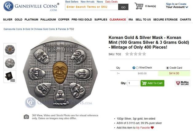 공사에 따르면 미국 게인즈빌, 중국 진구 등 해외딜러사 온라인쇼핑몰과 국내 구매대행 쇼핑몰 코인즈투데이를 통해 ‘한국의 탈’시리즈 메달을 구입할 수 있다.