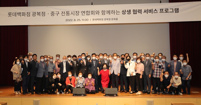 [로컬세계 부산=맹화찬 기자]부산 중구는25일 롯데백화점 광복점 문화홀에서 롯데백화점 임직원, (사)중구전통시장연합회(회장 신찬식) 회장 등 17개 시장 회장단, 중구의회(의장 이길희) 의원 등 60여 명이 참석한 가운데, 롯데백화점 광복점과 (사)중구전통시장연합회가 함께하는 상생협력 서비스 프로그램에 참여했다.