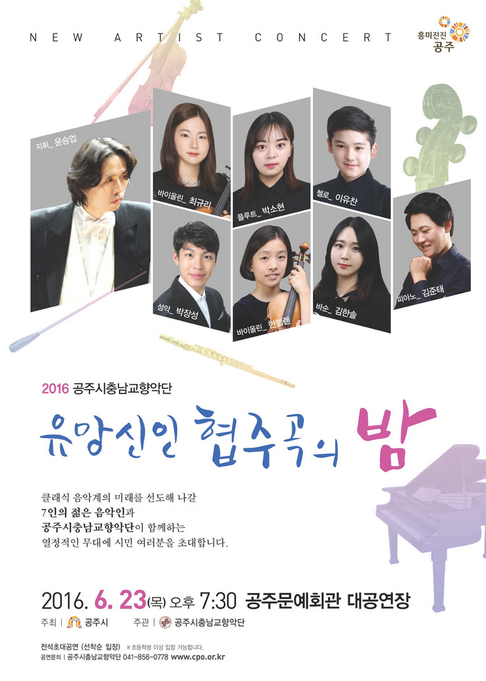 이번 공연은 전석 초대로 초등학생 이상 입장이 가능하며 기타 자세한 문의는 공주시 충남교향악단으로 하면 된다.