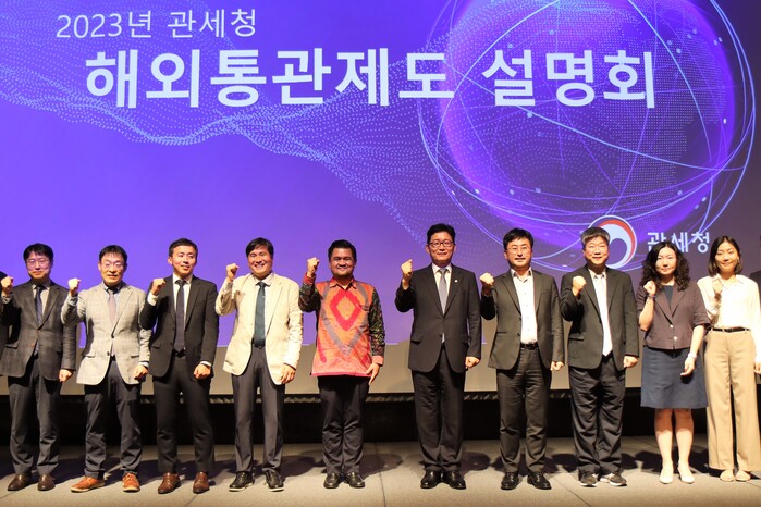 ▲ 해외통관제도 설명회에 참석한 관세관들과 기념촬영을 하는 고광효 관세청장(왼쪽 여섯번째) / 관세청 제공 |