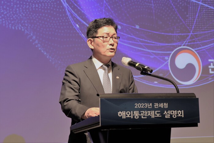 ▲ 해외통관제도 설명회에서 축사를 하는 고광효 관세청장. 관세청 제공 |