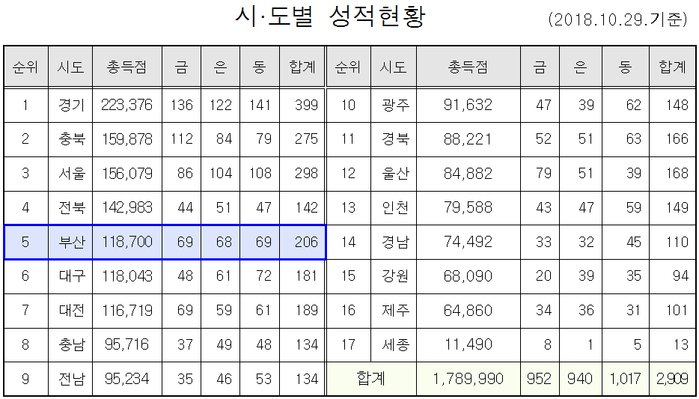 | ▲시도별 성적현황.(부산시 제공) |