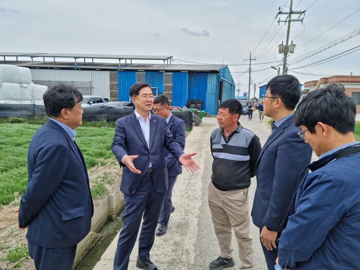 이날 현장에는 전주김제완주축협의 논 하계조사료 사업 현황에 대한 설명이 있었으며, 안병우 대표이사는 사업 참여농가와 조합 실무자의 고충 및 건의사항을 청취하며 추진방안 등을 의논했다.
