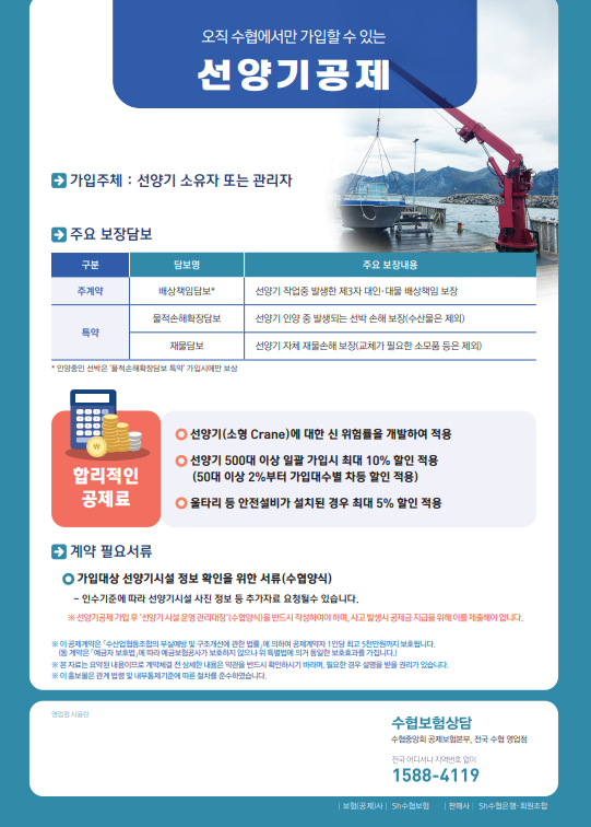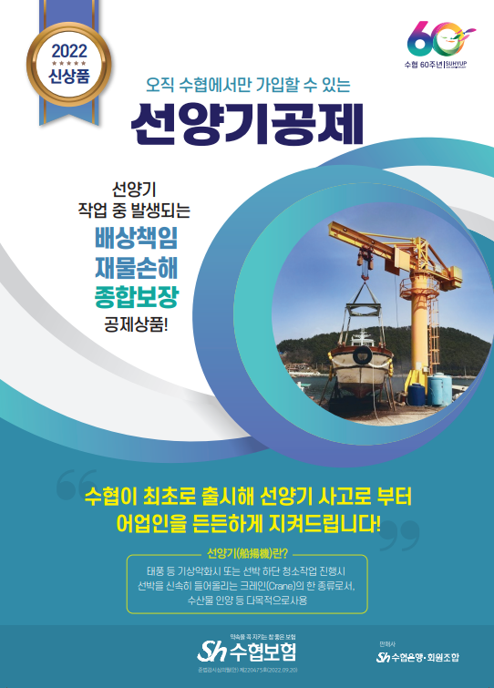 수협보험은 어업인의 특성을 반영한 맞춤형 보험상품인 어선원보험·어선보험·어업인안전보험·양식보험을 운영하고 있는데, 이번 상품 출시로 어업인의 보장 범위가 한층 넓어질 것으로 기대하고 있다.