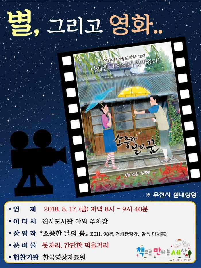 이번 행사에는 한국영상자료원의 ‘찾아가는 영화관’에서 대형 스크린과 영상을 제공받아 진행되며 영화는 안재훈·한혜진 감독의 ‘소중한 날의 꿈’을 상영한다.