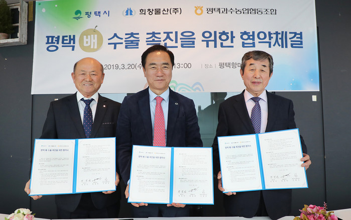 시는 협약에 따라 평택배 수출과 관련 해외 마케팅사업을 적극적으로 지원하고, 희창물산은 평택 배 수출 등을 우선적으로 추진한다.