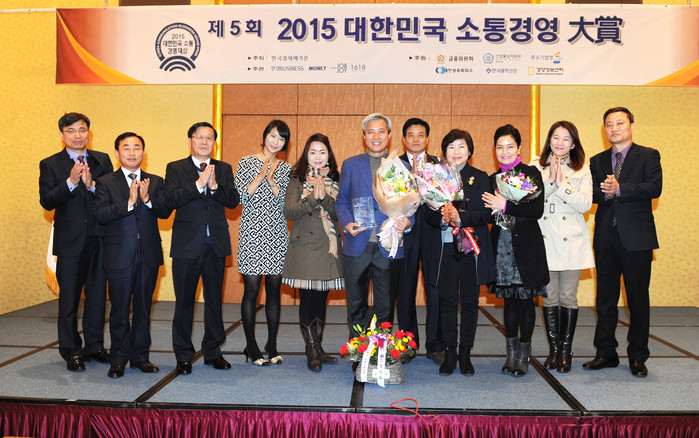 | ▲곽상욱 오산시장(가운데)이 16일 한국경제매거진 주최 ‘2015 대한민국 소통경영 대상’에서 공공부문 대상을 수상한 뒤 기념촬영을 하고 있다. |