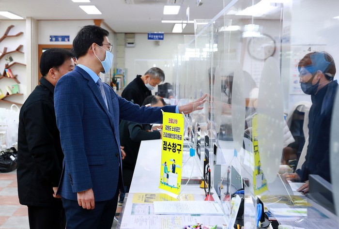 [로컬세계 박상진 기자]류태호 태백시장이 1일부터 접수에 들어간 강원도 소상공인 긴급생활안정지원금 상황 점검을 위해 4개 동 행정복지센터를 방문했다.
