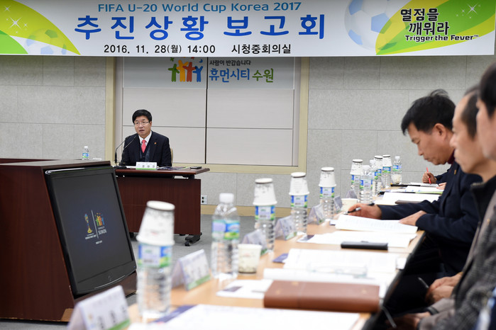[로컬세계 주덕신 기자]수원시가 내년 5~6월 시를 비롯한 6개 도시에서 열리는 ‘FIFA U-20 월드컵 2017’(20세 이하 월드컵) 개막을 6개월여 앞두고 준비상황을 점검하는 보고회를 열었다.