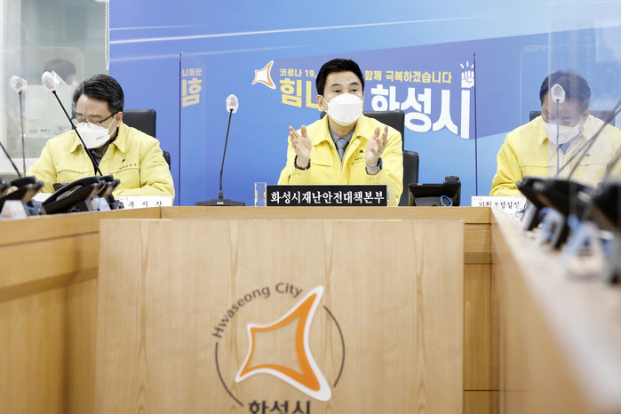 [로컬세계 고용주 기자]서철모 경기 화성시장이 7일 시청 재난상황실에서 부시장, 실국장 등이 참석한 가운데 특별방역대책회의를 개최하고 고강도 대응 시스템 마련에 나섰다.