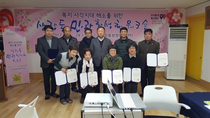 또 상장동 맞춤형 복지팀과 지역사회보장협의체의 활동 사례 보고, 경기도 무한돌봄 사례관리팀장의 ‘지역사회복지발전을 위한 지역사회보장협의체의 기능 및 역할’ 특별 강연이 진행 됐다.