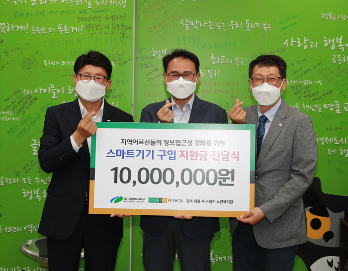 [로컬세계 박세환 기자]현대HCN금호방송은 3일 노인복지관 비대면 프로그램 서비스를 위한 ‘스마트기기 구입’ 후원금 1천만원을 대구 북구청(청장 배광식)에 기탁했다.