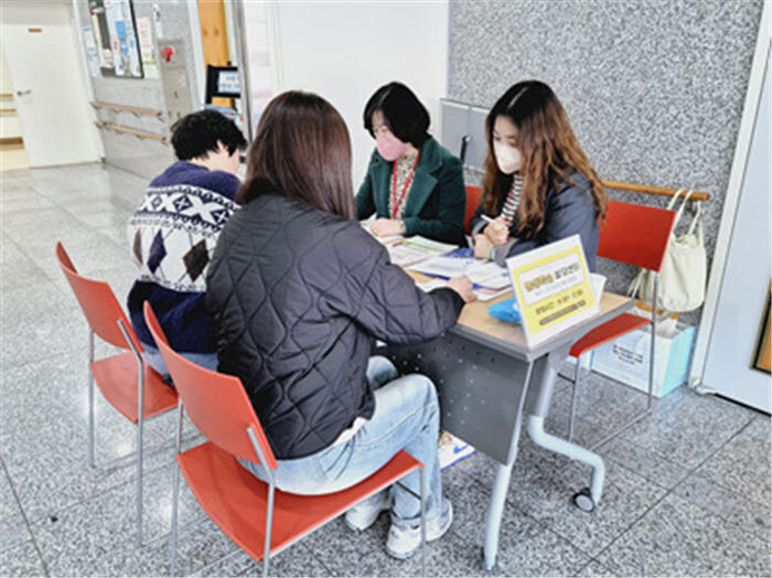 ▲평생학습상담활동가 들이 정관도서관에서 평생학습 상담을 진행하고 있다. 기장군 제공 |