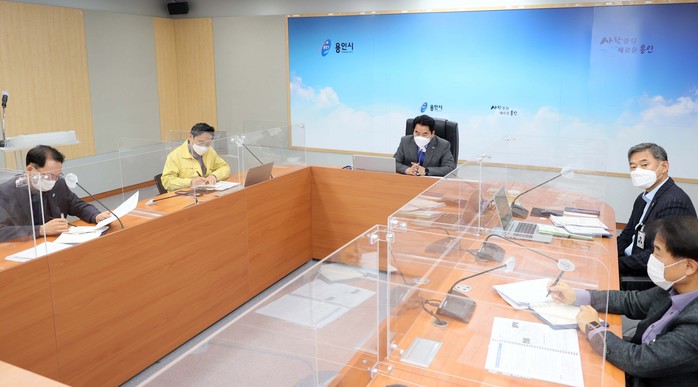 | ▲백군기 용인시장이 시정전략회의를 주재하고 있는 모습. 용인시 제공 |