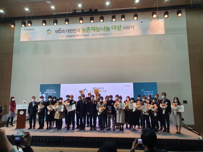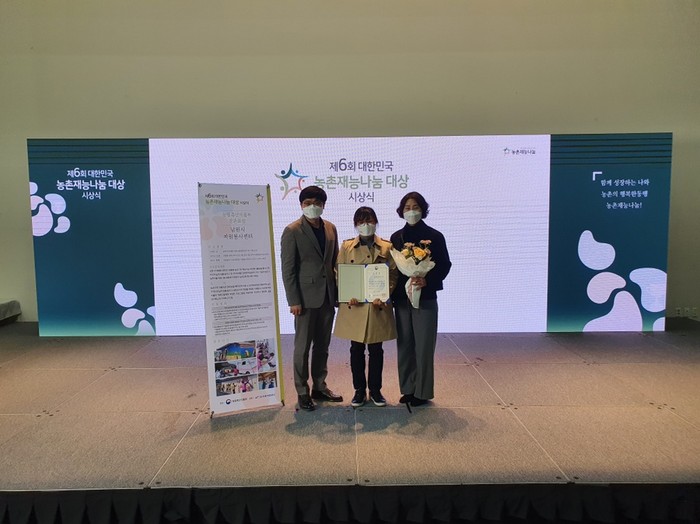 이날 수상은 한국농어촌공사에서 시행한 농촌재능나눔 활동지원사업에 2019년부터 2021년까지 4차례나 선정된 공로를 인정받아 수상하게 되었으며, 2021년에는 주거개선(방충망 교체, 벽화 그리기)사업과 치매예방 교육, 성장발달 프로그램 등 지역 맞춤형 사업을 진행하여 주민들의 큰 호응을 얻었다.