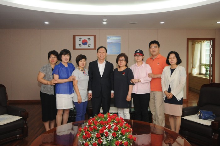 ▲대전동구의회 이나영. 박민자 의원 등 참석자들은 설동호(가운데) 대전교육감과 면담을 갖고 기념촬영을 하고 있다. |
