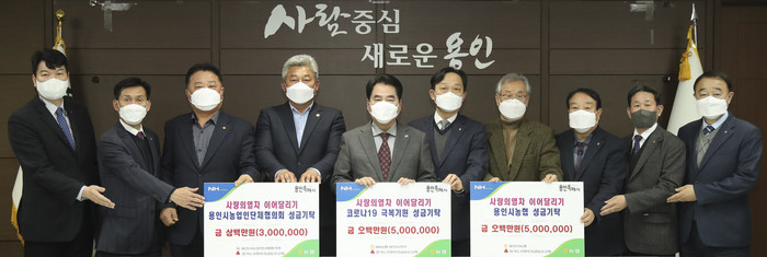 NH농협은행 용인시지부와 농협 10개 조합은 각각 500만원을, 용인시 농업인단체협의회는 성금 300만원을 기탁했다.