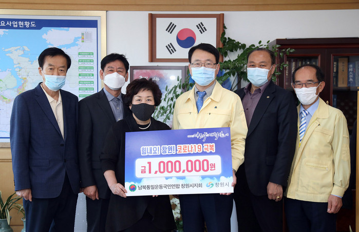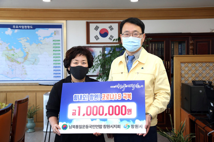 [로컬세계 한용대 기자]경남 창원시(시장 허성무)는 21일 남북통일운동국민연합 창원시지회(회장 김임옥)가 성금 100만원을 기탁했다고 밝혔다.