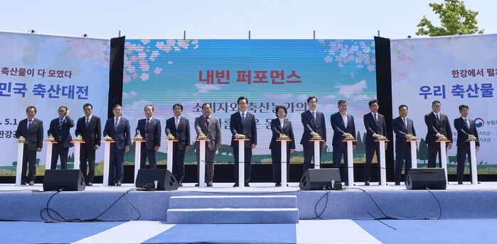 농림축산식품부 주최, 낙농진흥회·축종별 자조금관리위원회 주관으로 진행되는 이번 행사는 내수 활성화 도모를 위한 축산분야 통합 소비촉진 행사로, 농림축산식품부 정황근 장관 및 대한한돈협회 손세희 협회장 등 주요 축산 협회장 및 축협 조합장 등이 자리에 참석해 ‘2023 대한민국 축산대전’의 시작을 알리는 개막행사를 열었다.