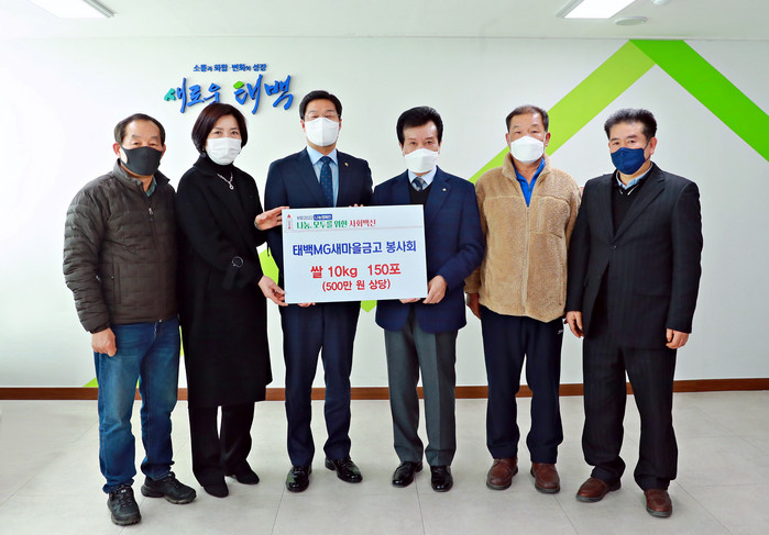 [로컬세계 박상진 기자]강원 태백 MG 새마을금고 봉사회(회장 홍충표)는 3일 태백시청을 방문해 저소득 가정을 위한 이웃돕기 성품으로 백미 150포(500만 원 상당)를 지정 기탁했다.