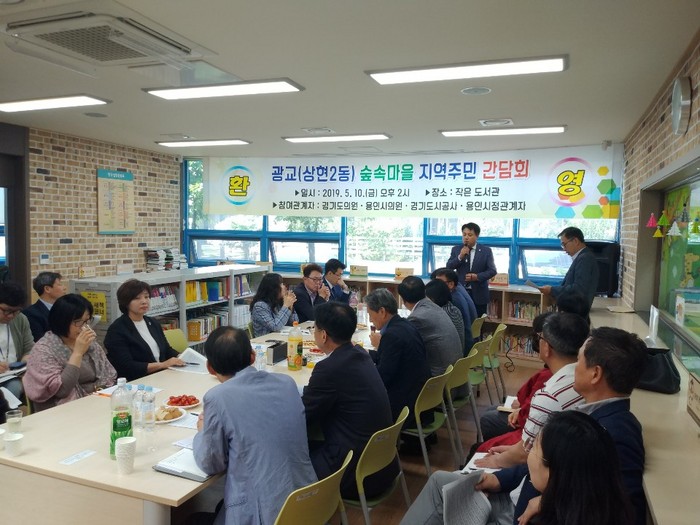 이번 간담회는 현장에서 주민들의 건의 및 애로사항을 청취하고, 이를 해결하기 위해 마련된 자리로 김용찬 의원과 용인시의원, 용인시, 경기도시공사 관계자, 숲속마을 발전협의회 및 상가 번영회 회원 등 20여 명이 참석했다.