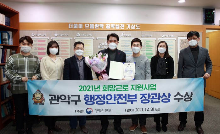 [로컬세계 임종환 기자]서울 관악구(구청장 박준희)는 서울시 25개 자치구 중 유일하게 ‘2021년 희망근로 지원사업’ 성과 창출 우수기관으로 선정, 행정안전부 장관 표창을 수상했다고 3일 밝혔다.