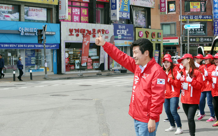 이어 오전11시 반에는 평택농협 사거리에서 500여명의 지지자들과 시민들이 참석한 가운데 출정식을 갖고 필승을 다짐했다.