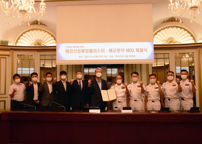코로나19 방역지침을 철저히 준수한 가운데 진행된 이번 업무협약식은 해군과 해양산업통합클러스터 간 긴밀한 교류협력 네트워크 구축을 위해 마련됐으며, 부석종 해군참모총장과 이형철 해양산업통합클러스터 회장 등 관계자가 참석했다.