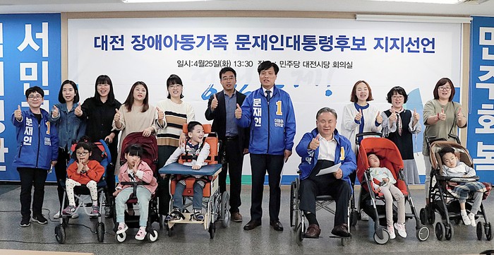 대전 장애아동가족 246명은 25일 오후 더민주당 대전시당에서 기자회견을 갖고 문재인 후보 지지를 선언했다.