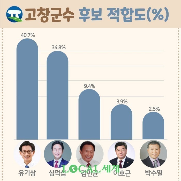 [로컬세계 김경락 기자]임인년(壬寅年) 새해 민심이 반영된 첫 여론조사에서 전북 고창군은 유기상 현 군수에 손 들어줬다.