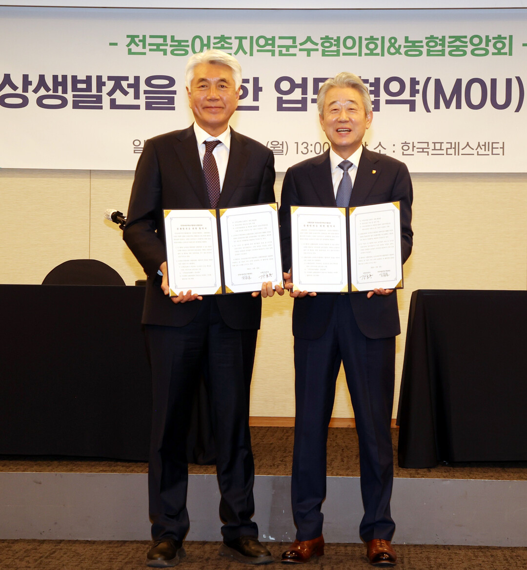 농협중앙회는 전국농어촌지역군수협의회와 상생협력을 위한 업무협약(MOU)체결하고 있다.