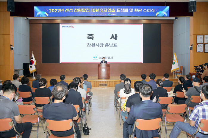 시는 음식에 대한 자부심으로 한결같은 맛을 유지해 10년간 맛집 지정을 유지하고 평소 음식문화개선 등 위생시책에도 적극 협조해 2022년 선정 창원맛집 10년 유지업소 11개소 영업주에 대해 창원시 외식산업발전에 기여한 공로를 인정해 표창패를 수여했다.