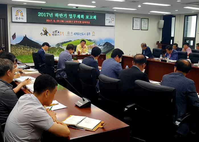 [로컬세계 송요기 기자]충남 공주시가 지난 22일부터 23일까지 이틀간 시청 중회의실에서 오시덕 시장을 비롯한 6급 이상 간부공무원들이 참석한 가운데 2017년도 상반기 주요업무 성과 및 하반기 업무계획 보고회를 가졌다.
