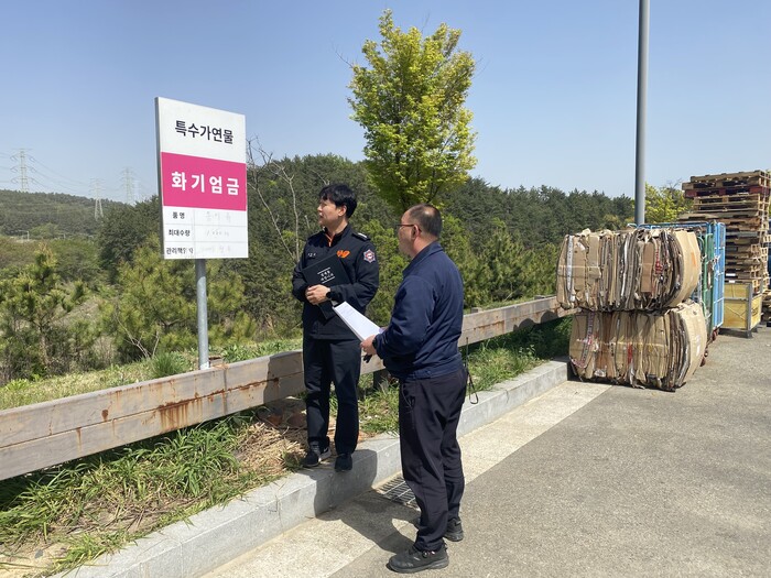 [로컬세계 부산=맹화찬 기자]부산 기장소방서는 면화류, 종이 부스러기, 나무껍질 등 화재가 발생하는 경우 불길이 빠르게 확산되는 특수가연물 저장·취급업체를 대상으로 오는 6월 1일부터 시행하는 ‘특수가연물 표지 의무 설치’사항 홍보에 나섰다.