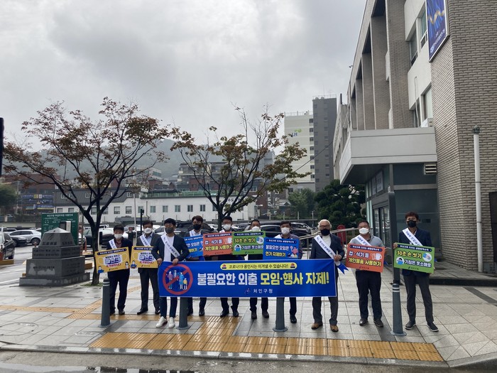 [로컬세계 김병민 기자]경기 용인시는 8일 처인구청 사거리와 김량장동 일원에서 처인구 체육회연합회와 코로나19 방역지침 준수 캠페인을 펼쳤다고 밝혔다.