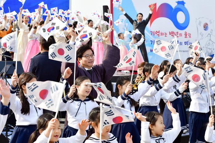 또 행궁광장에서 '기억하는 백 년의 울림, 기약하는 백 년의 미래'를 주제로 열린 기념 공연에서는 '수원, 그날의 함성'이 상연됐다.