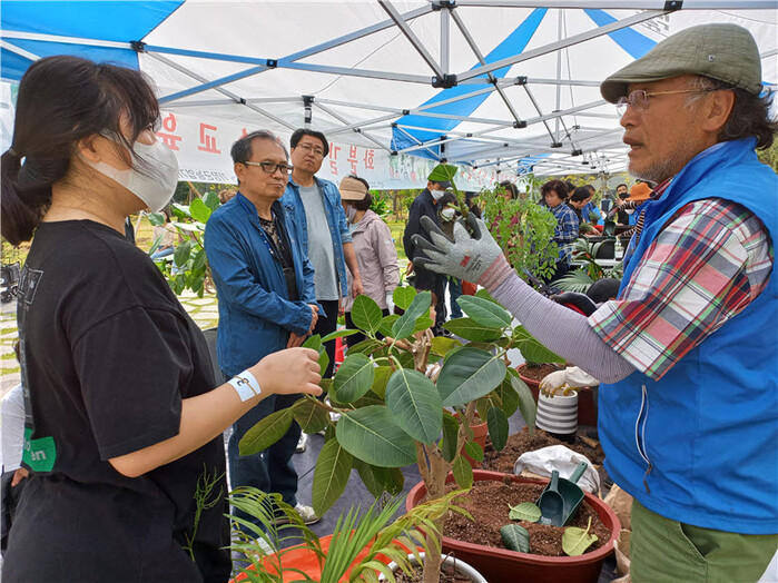 ▲ 지역주민들이 식물 전문가로부터 반려식물 관리 컨설팅을 받고 있다. 기장군 제공 |