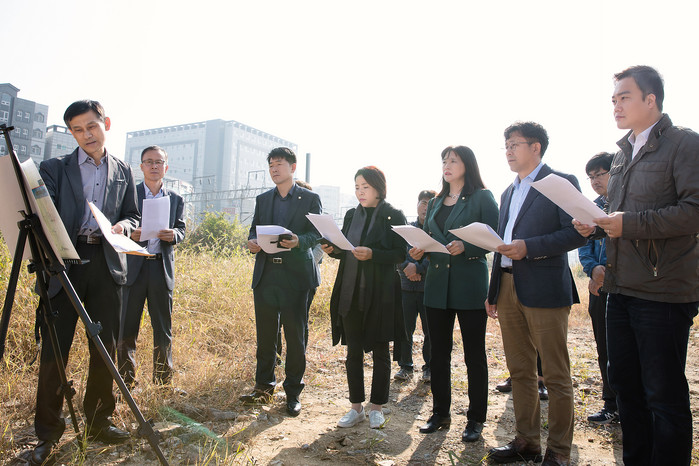 | ▲화성시의회 기획행정위원회 위원들은 17일 공유재산관리계획 심의 대상지인 병점복합타운 도시개발 사업지구내 공영주차장 조성사업 예정 부지를 현장 방문했다.(화성시의회 제공) |