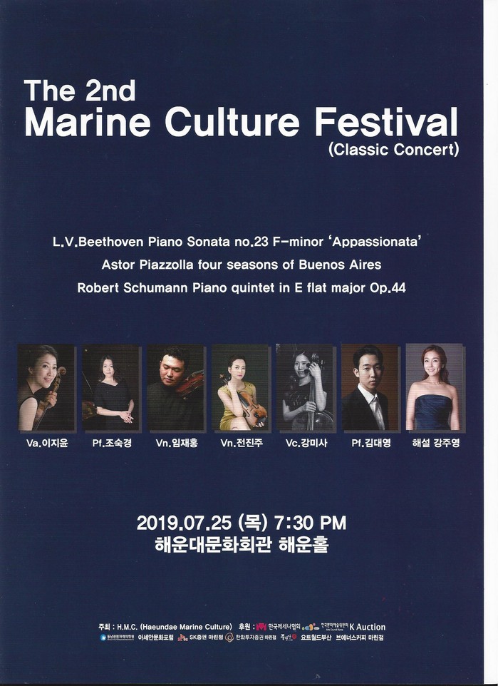 이날 공연은 베토벤의 피아노연주곡(Piano Sonata no.23 F-minor ‘Appassionata’)을 시작으로 아스토르 피아졸라의 기악합주곡(four seasons of Buenos Aires)과 로버트 슈만의 피아노와 현악4중주로 구성된 피아노 5중주 연주곡(Piano quintet in E flat major Op.44)으로 약 2시간에 걸쳐 펼쳐졌다.