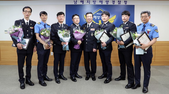 [로컬세계 맹화찬 기자]남해지방해양경찰청(청장 구자영)은 1일 경찰관 및 일반직공무원 총 7명에 대한 승진임용 및 모범공무원증 수여식을 했다.